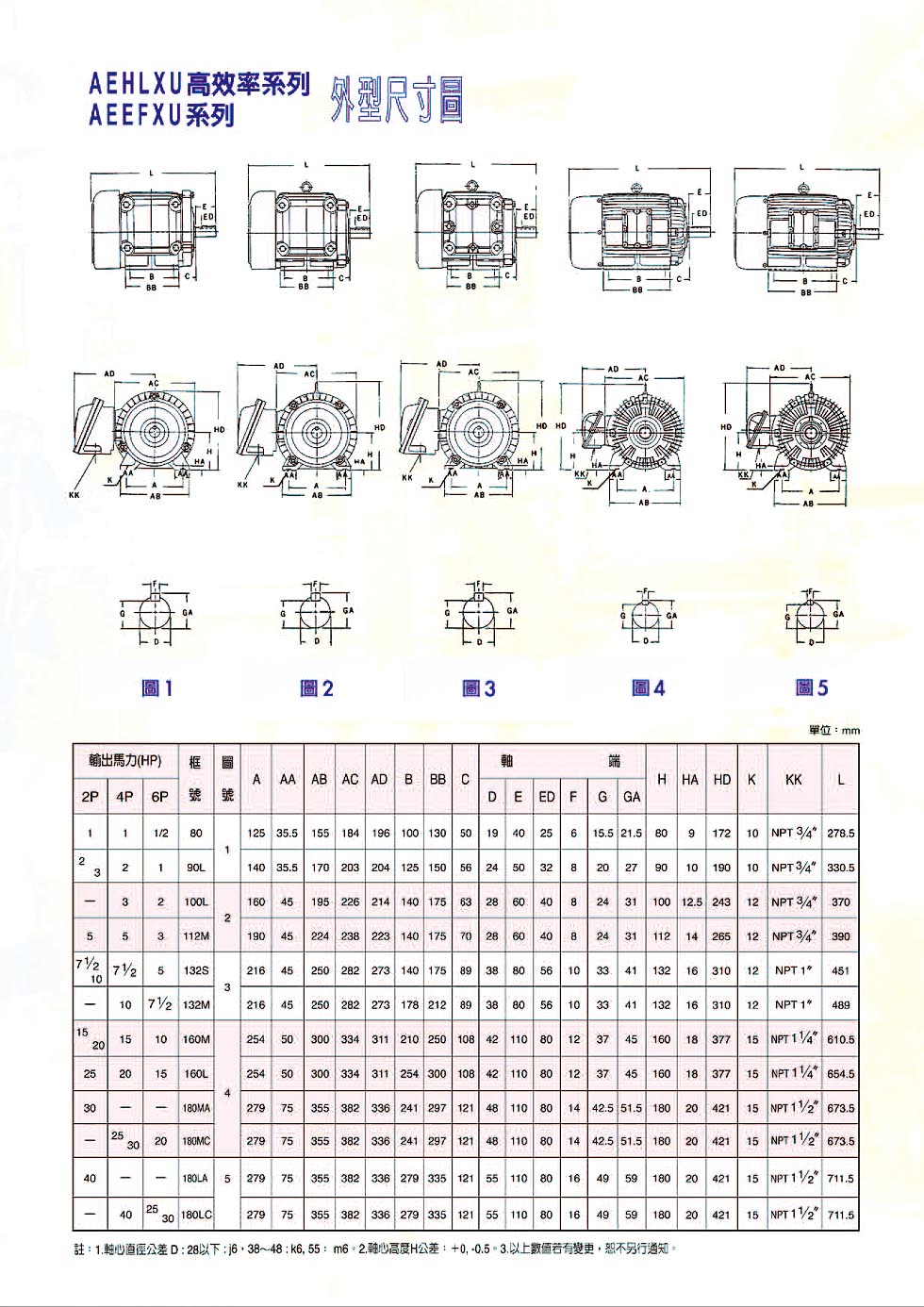 注:電機溫升限度表示電機外殼表面之溫度上升限度。